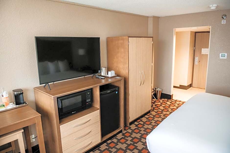 The suite's kitchenette, which has a refrigerator and a microwave, is available for cooking and storing food. This suite features a tea and coffee maker, a seating area and a TV with cable channels.